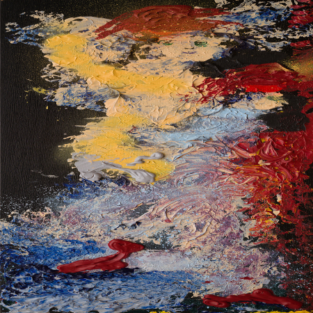 acrylique, crayon bic / boiserie cirée , 75,4 cm x 39,0 cm, signature : bas droit, date : juillet 2025 |