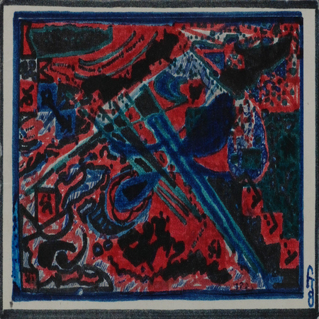 feutres / papier, 6,0 cm x 8,5 cm,     signature : bas droit,     date : 10/12/1971