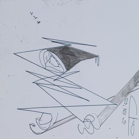 stylo et crayon / papier, 10,5 cm x 14,8 cm, signature : bas droit, date : 17/12/2010