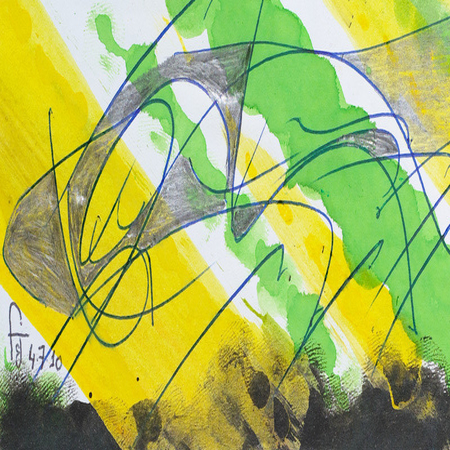 stylo et gouache / papier, 7,0 cm x 13,7 cm, signature : bas gauche, date : 04/07/2010