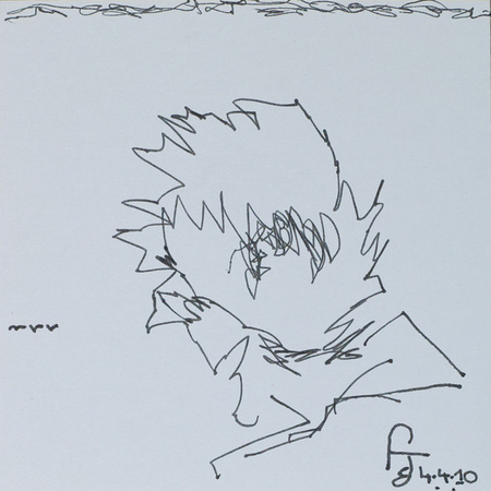 stylo / papier, 10,5 cm x 10,5 cm, signature : bas droit, date : 04/04/2010