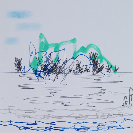 stylo et feutres / papier, 10,6 cm x 15,0 cm,     signature : bas droit,     date : 18/12/2010