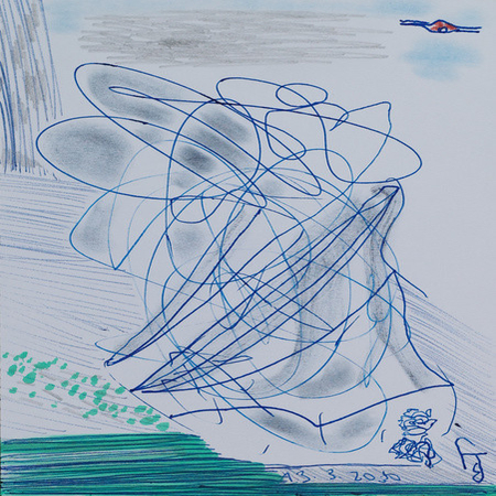 stylo et fusain / papier, 12,1 cm x 9,2 cm, signature : bas droit, date : 20/03/2010