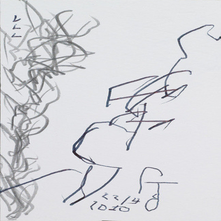 stylo et crayon / papier, 11,7 cm x 6,5 cm, signature : milieu bas, date : 22/04/2010