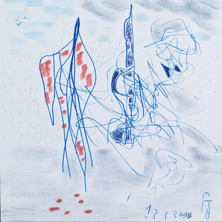 stylo et feutre / papier, 10,8 cm x 9,0 cm,     signature : bas droit,     date : 13/03/2010