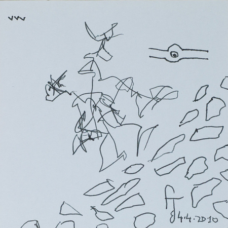 stylo / papier, 10,5 cm x 10,5 cm,     signature : bas droit,     date : 04/04/2010