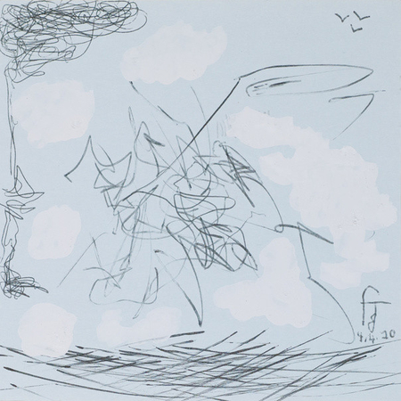 stylo et crayon / papier, 10,5 cm x 10,5 cm, signature : bas droit, date : 04/04/2010