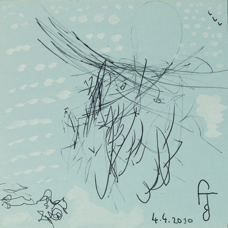 stylo et crayon / papier, 10,6 cm x 10,6 cm,     signature : bas droit,     date : 04/04/2010