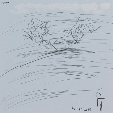 stylo et crayon / papier, 10,6 cm x 10,6 cm,     signature : bas droit,     date : 04/04/2010