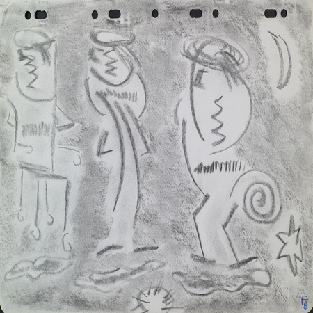 fusain / papier, 21,0 cm x 29,5 cm, signature : bas droit, date : 2001
