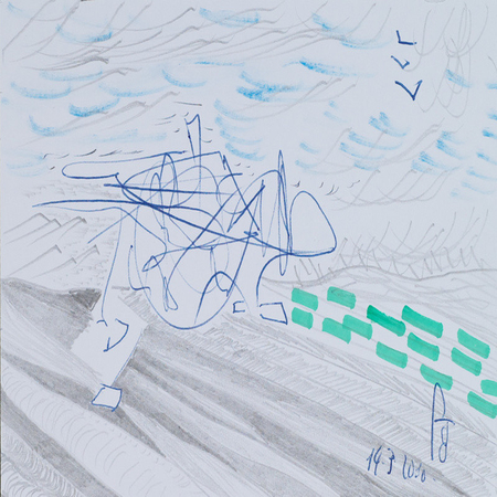 stylo crayon et feutre / papier, 9,0 cm x 12,0 cm,     signature : bas droit,     date : 14/03/2010