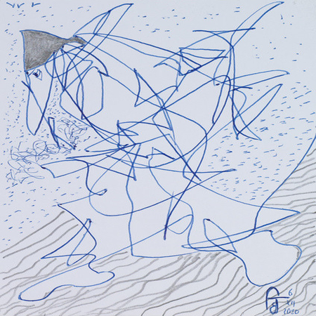 stylo et crayon / papier, 14,9 cm x 10,6 cm,     signature : bas droit,     date : 06/12/2010